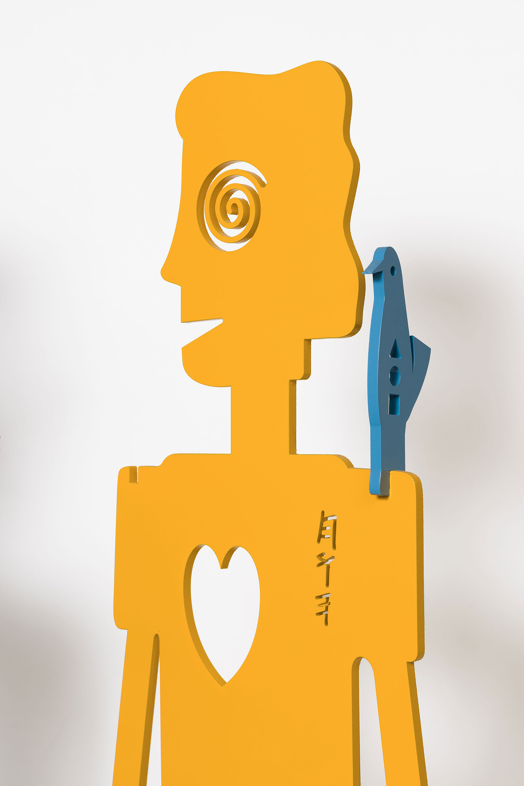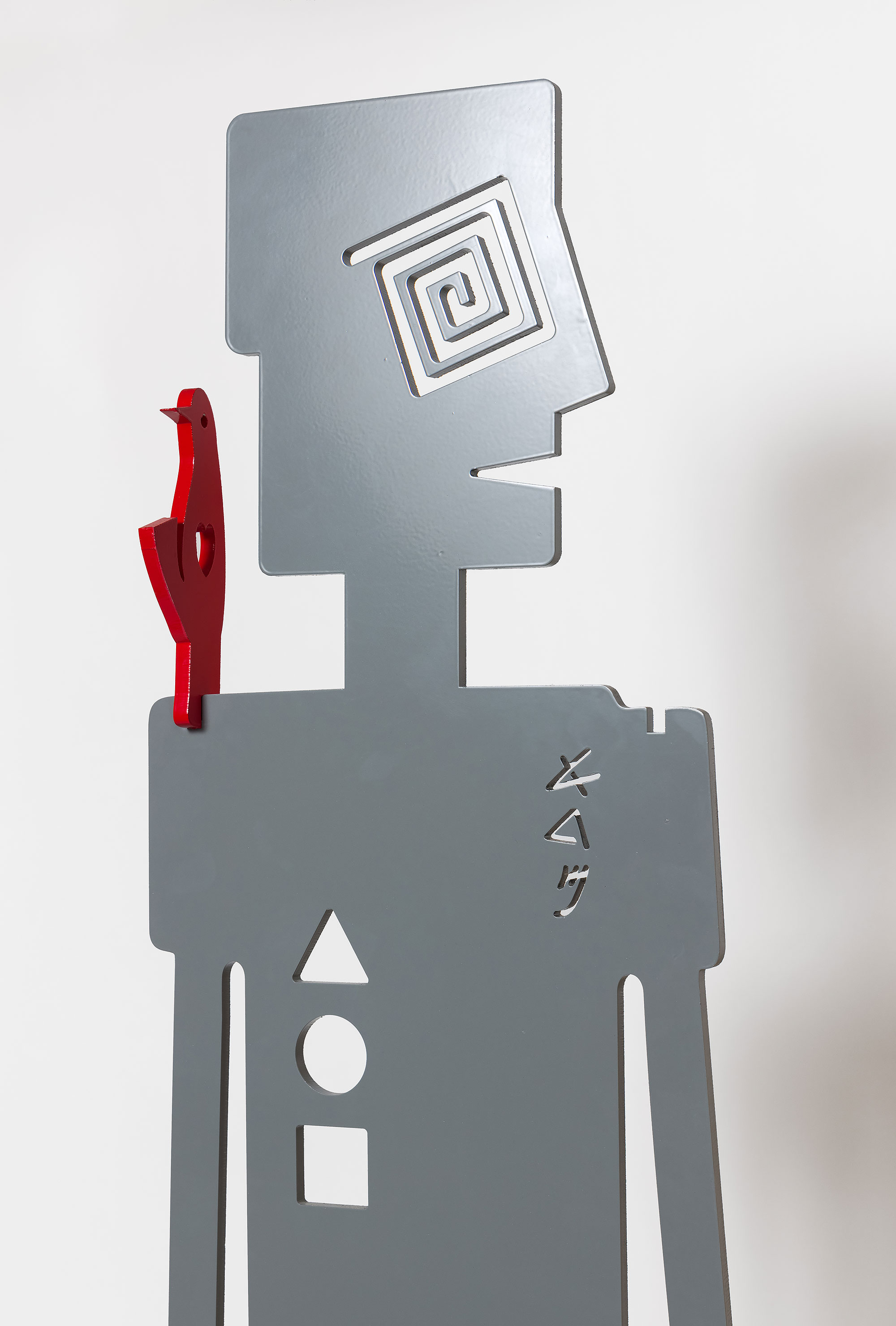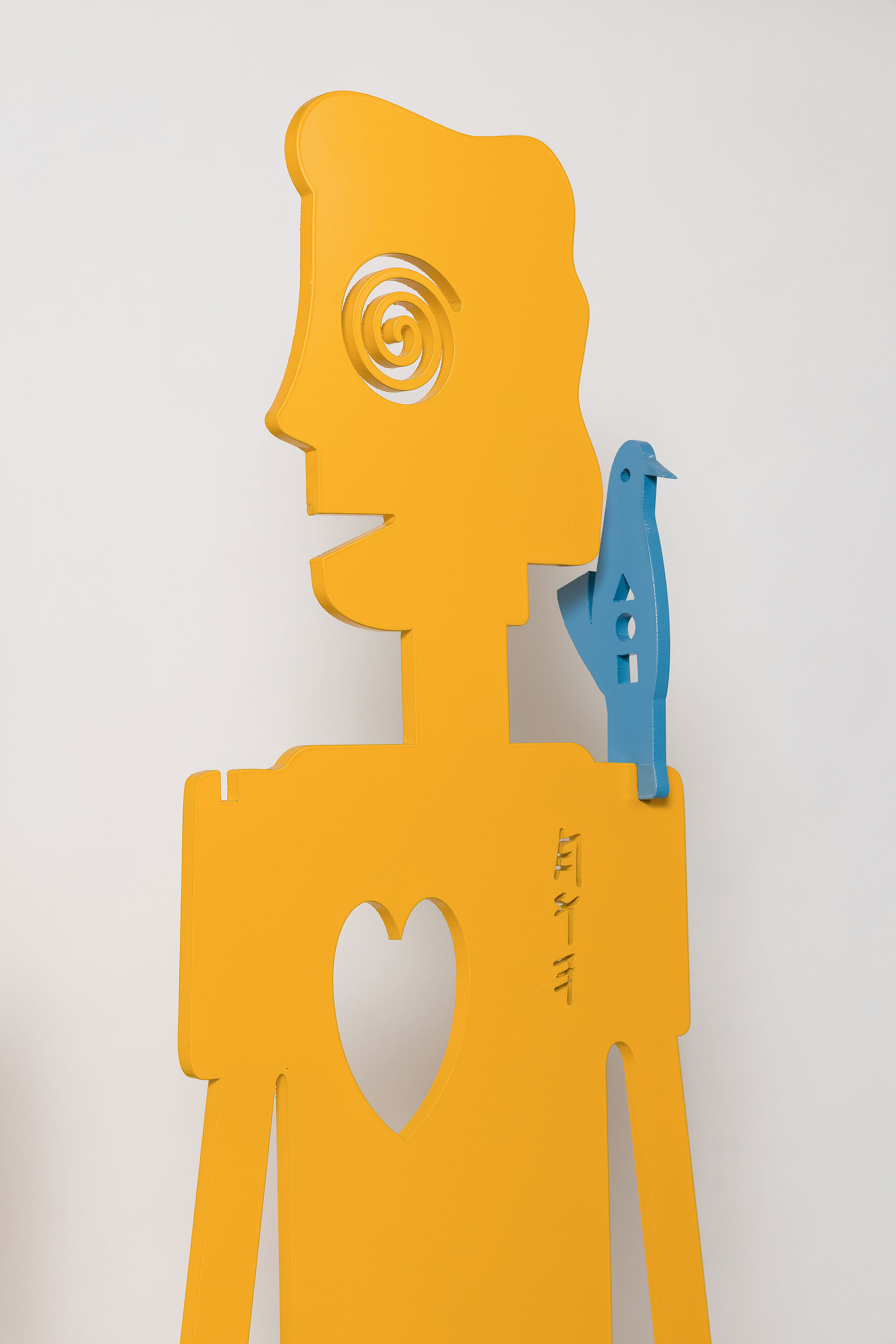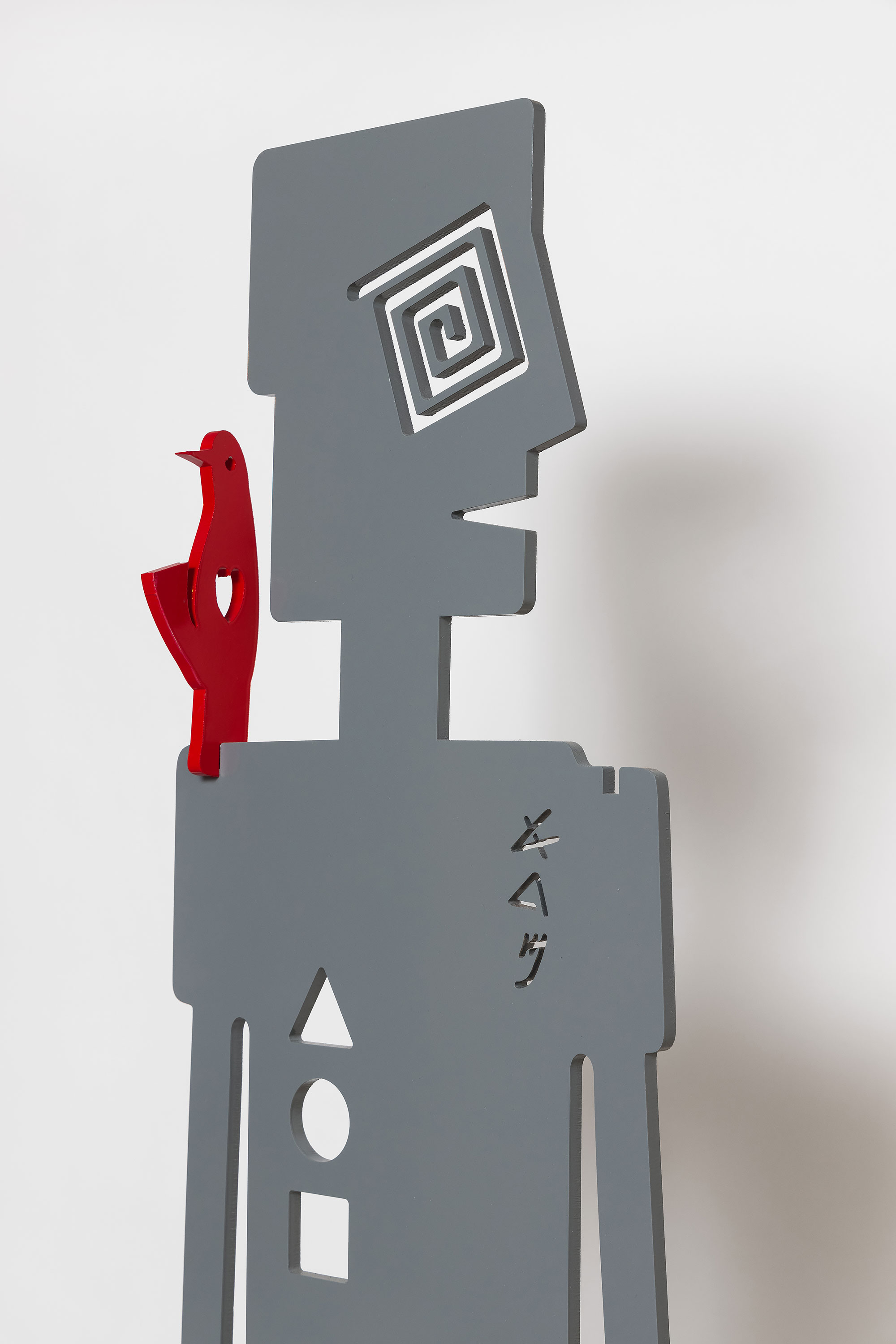 A striking and unique 3D sculpture titled ‘Adam & Eve’, crafted with original automobile colors on aluminum. Each piece stands at approximately 203 x 35 cm (Eve) and 206 x 35 cm (Adam), making them suitable for both indoor and outdoor display. This artwork is a fusion of pop art and modern art influences, drawing inspiration from the Bauhaus movement, pop art icons, and ancient scripts. This piece reflects the artist distinctive style and storytelling passion, bridging the past and present, making it a special and exciting addition to any collection.